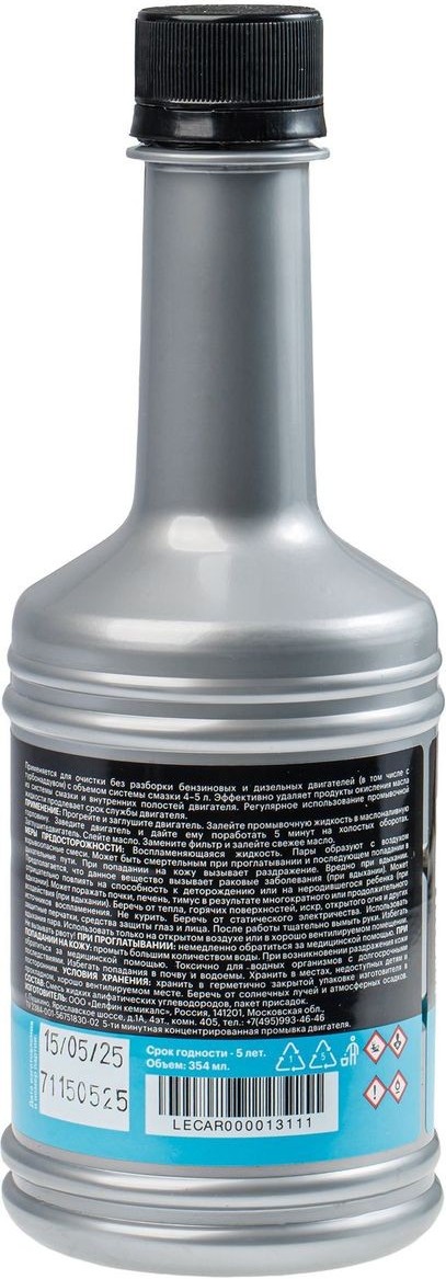 Промывка двигателя Lecar 5-минутная LECAR000013111 — средство для подготовки двигателя к замене моторного масла. Формула на основе жидких алифатических углеводородов с пакетом моющих присадок действует в зонах, омываемых смазкой: размягчает шлам, удаляет поверхностные отложения и облегчает их выведение при сливе отработанного масла.