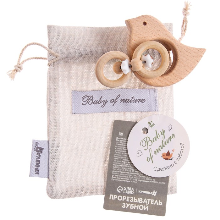 Прорезыватель силиконовый Bird с элементами из дерева