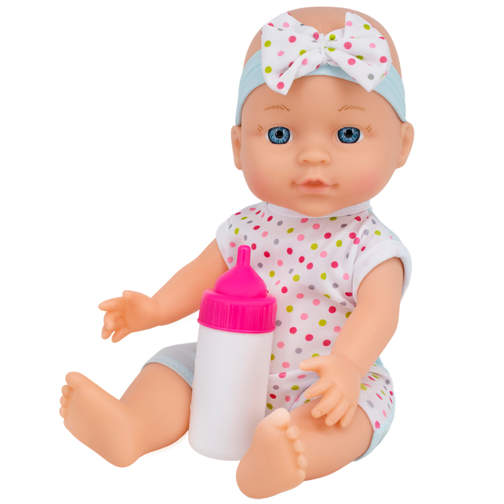 Кукла выглядит достаточно реалистичной – у нее очень милое личико, большие глазки и подвижные конечности. Игрушечного карапуза купать. В комплект входит дополнительные игровые аксессуары (бутылочка, погремушка и стильный комплект одежды), а также небольшой сюрприз (раскраска и свидетельство о рождении).