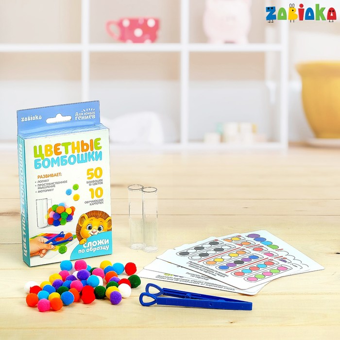 Развивающий набор «Цветные бомбошки: сложи по образцу» — увлекательный способ обучения малыша.