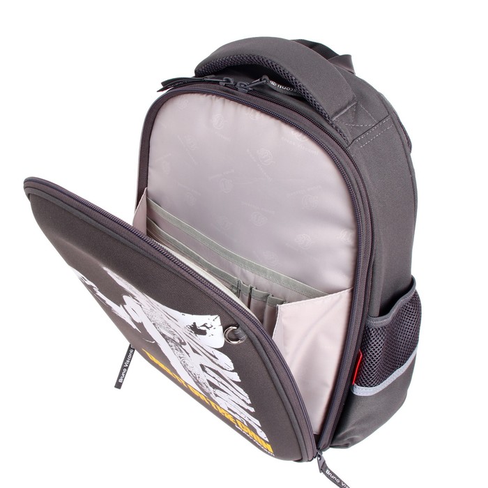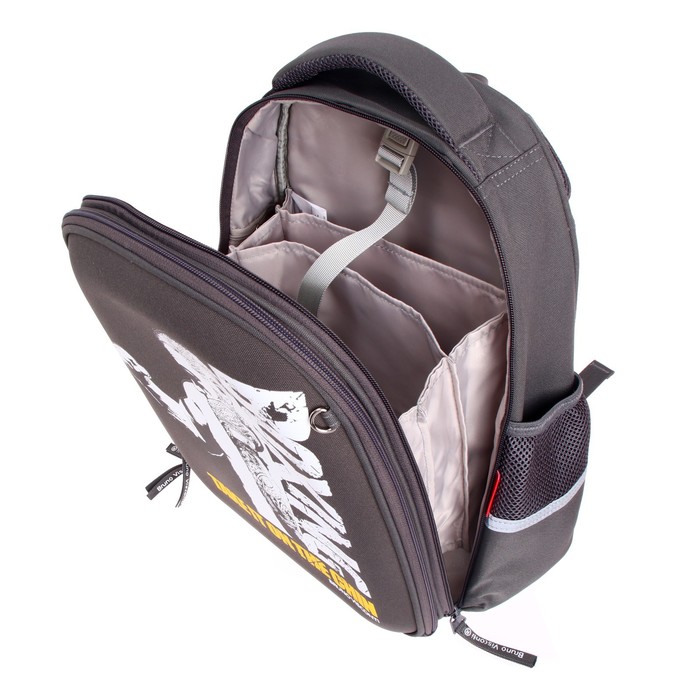 Рюкзак имеет два основных отделения: первое отделение содержит органайзер с молнией и карман-сеточку, второе отделение состоит из трех частей с двумя разделителями с фиксирующим ремнем и дополнено карманом на молнии для карточки. Рюкзак снабжён четырьмя светоотражающими элементами. Усиленное дно рюкзака оснащено резиновыми ножками, защищающими от загрязнения и влаги.