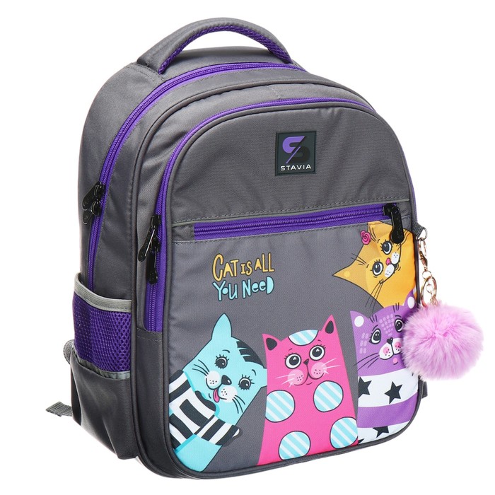 В соответствии с требованиями к безопасности на дороге, ранец имеет светоотражающие элементы на лямках и корпусе. Приятный бонус - колечко-подвес для брелока. Брелок также прилагается.*