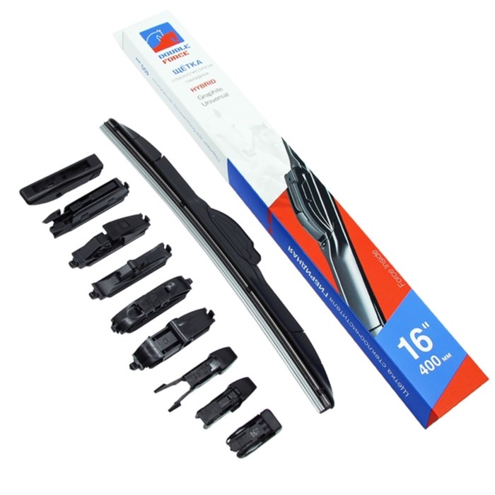 Щётка стеклоочистителя гибридная Double Force, 400 мм (16″) - это надёжный дворник, сочетающий прочность каркасной конструкции и современный аэродинамический дизайн бескаркасных моделей. Он обеспечивает равномерное прижатие по всей длине, эффективное удаление воды, снега и грязи, а также тихую и плавную работу.