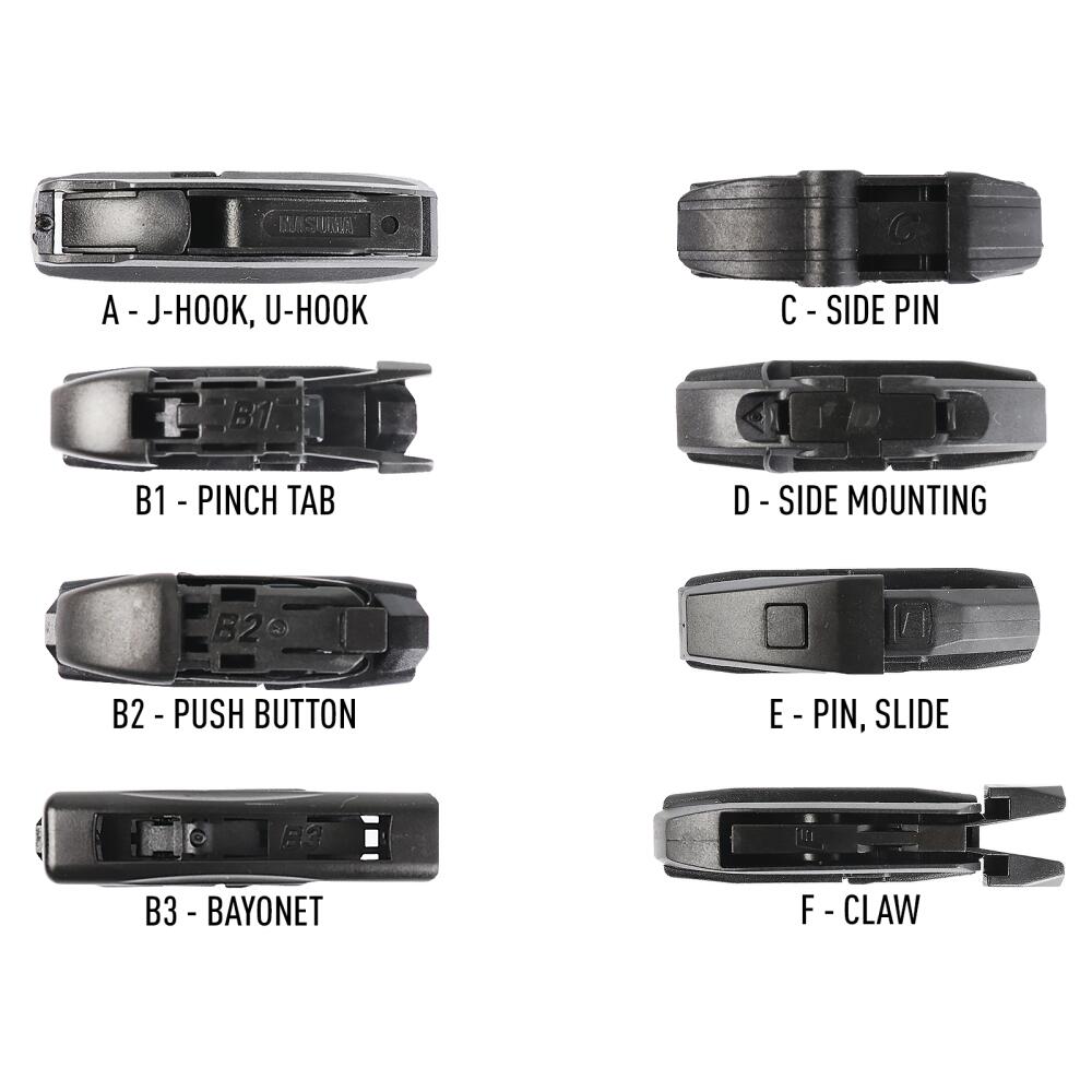 Вид крепления: Bayonet 7.2x2.5. адаптер B3; Claw. адаптер F; Narrow Push Button 16 mm. адаптер B2; Pin Lock. адаптер E; Pinch Tab (GWB044). адаптер B1; Push Button 19 mm. адаптер B2; Side mounting. адаптер D; Side Pin 17mm (Side Lock. Pin in Arm). адаптер C; Side Pin 22mm (Side Lock. Pin in Arm). адаптер C; Small J-Hook (9х3). адаптер A