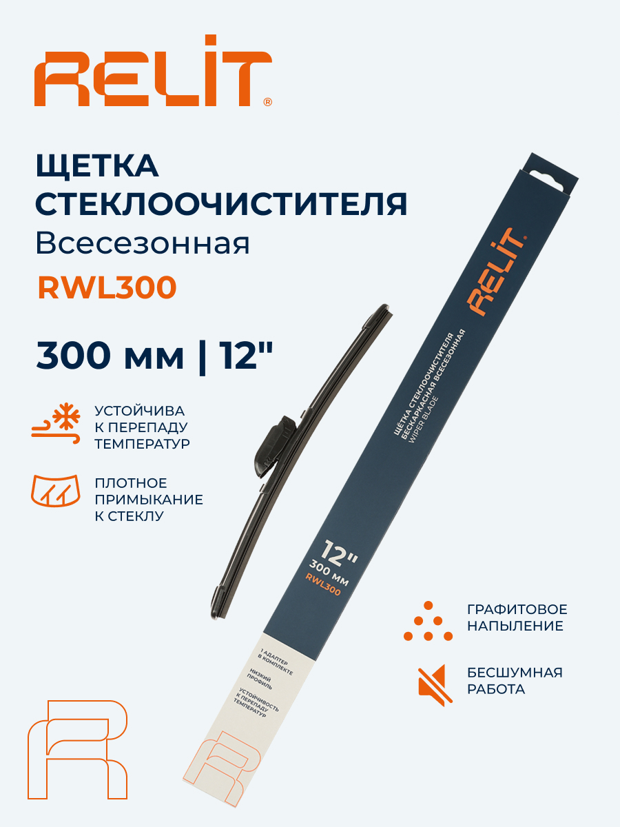 Бескаркасная щетка стеклоочистителя RELIT 300 мм (12") с креплением HOOK подходит для большинства авто. Аэродинамический профиль снижает шум и обеспечивает плотный прижим к стеклу. Равномерно очищает поверхность без разводов, устойчива к износу и подходит для всесезонной эксплуатации. Для бескаркасных щеток стеклоочистителя RELIT используется износостойкий упругий элемент, обеспечивающий ровный прижим по всей длине стекла. Аэродинамическая форма снижает шум и вибрации, делая работу дворников стабильной даже на высокой скорости. Щетка не теряет эластичность, плотно прилегает к поверхности и равномерно очищает стекло без разводов. Низкий профиль конструкции обеспечивает лучшую обзорность в дождь, снег и межсезонье. Щетки RELIT совместимы с креплением HOOK и подходят для большинства распространённых моделей автомобилей с аналогичным типом крепления.