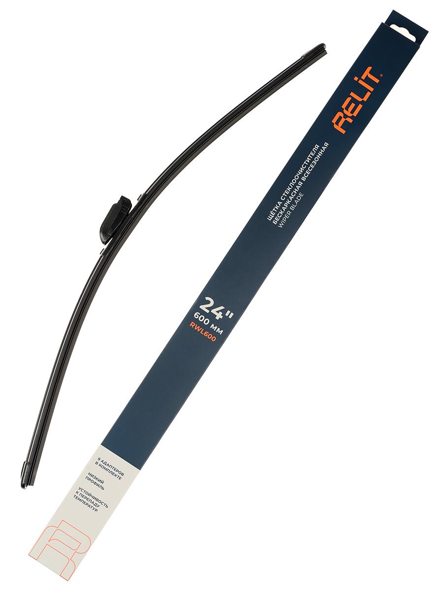 Бескаркасная щетка стеклоочистителя RELIT 600 мм (24") с адаптерами подходит для большинства автомобилей. Аэродинамический низкий профиль снижает шум, обеспечивает равномерный прижим и эффективную очистку стекла без разводов, подходит для всесезонной эксплуатации. Для бескаркасной щетки стеклоочистителя RELIT 600 мм используется износостойкий упругий элемент, обеспечивающий равномерный прижим по всей длине стекла. Аэродинамическая форма конструкции снижает шум и вибрации, обеспечивая стабильную работу дворников даже на высокой скорости. Щетка сохраняет эластичность, плотно прилегает к стеклу и эффективно очищает поверхность без разводов. Низкий профиль обеспечивает лучшую обзорность в дождь, снег и межсезонье. Щетка RELIT совместима с креплениями HOOK, SIDE PIN, PUSH BUTTON (16 мм и 19 мм), PINCH TAB, TOP LOCK, BAYONET ARM, REN-DK/VATL5.1 и LZS-LB/DNTL1.1. Подходит для большинства автомобилей с указанными типами креплений. Комплект адаптеров: 8 шт.