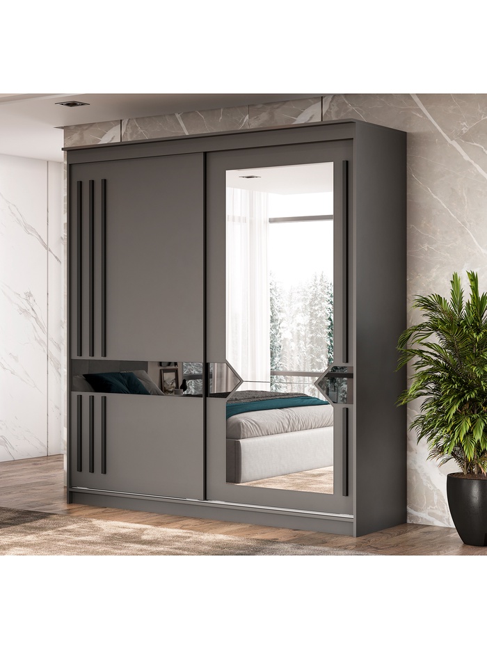 Вид корпусной мебели, отличающийся от обычных шкафов раздвижными дверями. Лаконичный дизайн с дверью с зеркалом визуально расширяет пространство и делает интерьер современным и функциональным. Модель сочетает вместительность, удобство и элегантный внешний вид.
