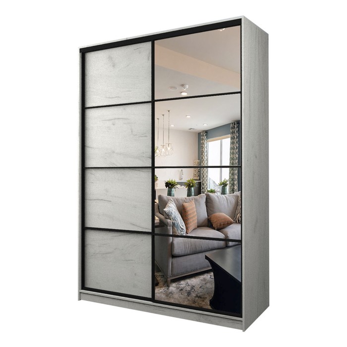 Шкаф – купе Max-МШ-23-6-16-15, 1600×600×2300 мм, с зеркалом, цвет дуб крафт белый
