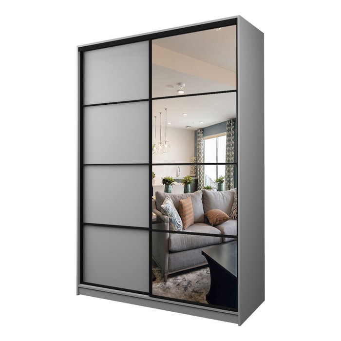 Шкаф – купе Max-МШ-23-6-16-15, 1600×600×2300 мм, с зеркалом, цвет серый шагрень