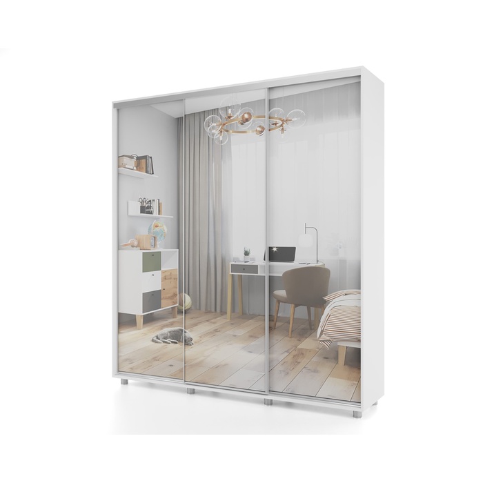 Шкаф-купе PRIME, 3 двери, 3 зеркала, 1770×604×2300 мм, цвет белый
