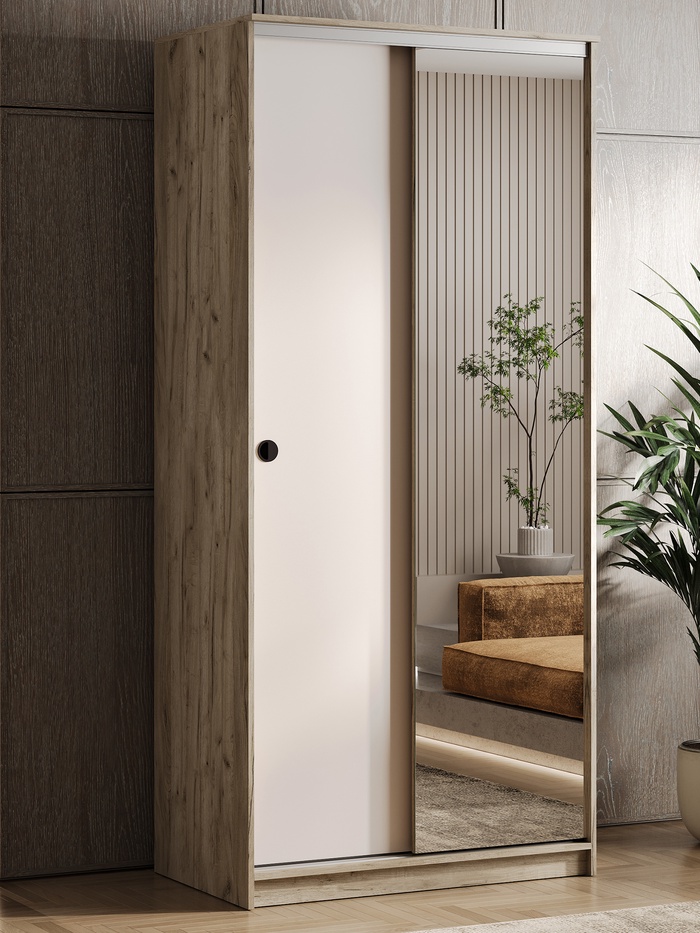 Шкаф-купе с зеркалом Альянс , 1000х620х2200, Кашемир/Крафт серый