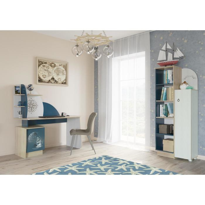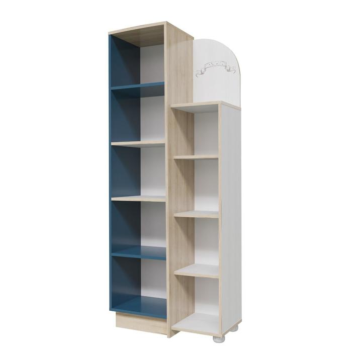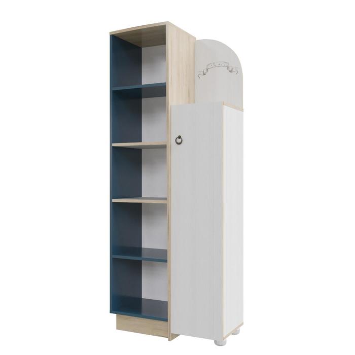 Шкаф пенал Бриз 700х360х1720 Дуб ривьера/Рамух белый/Синий Бриз