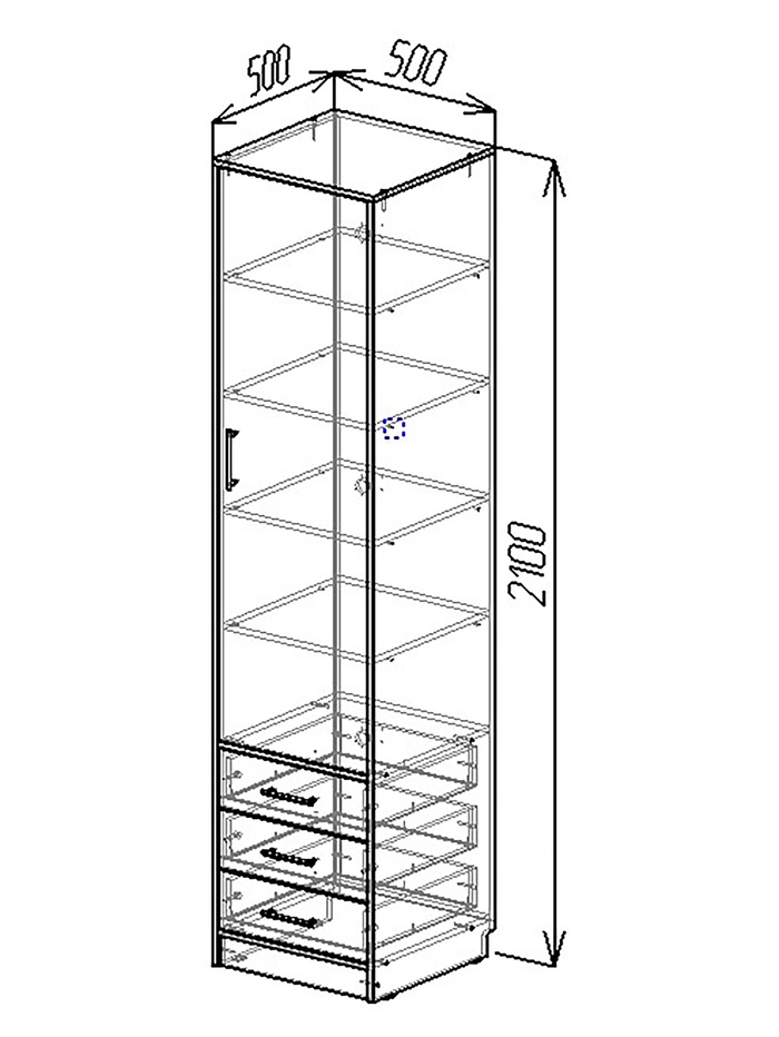 Пенал 500х500х2100 - вместителен и удобен. Выполнен из экологически чистых и качественных материалов. Однодверный шкаф предоставляет пространство для организации одежды, белья и других предметов.