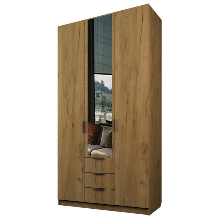 Шкаф трехдверный «Экон», 3 ящика, с зеркалом, 1200×520×2300 мм, цвет дуб крафт золотой