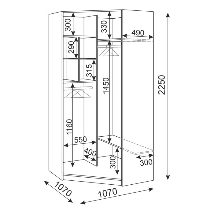 107 × 107 × 225 см