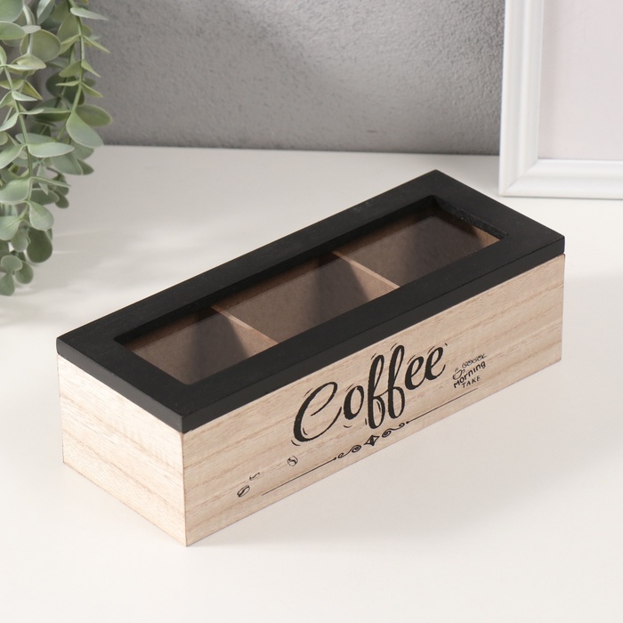 Шкатулка дерево 3 деления "Утро начинается с кофе" 9х23,4х7,2 см