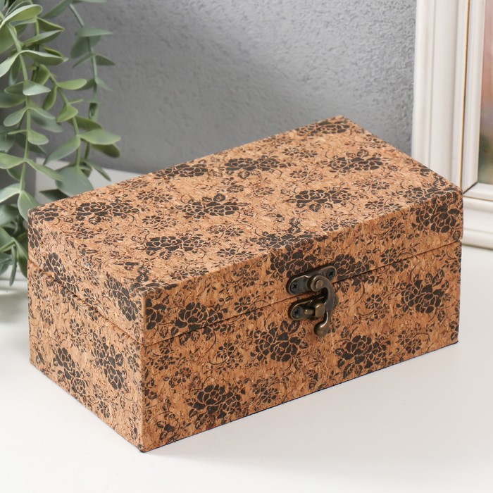 Шкатулка дерево кожзам под пробку "Цветочный фон" 18х10х8 см