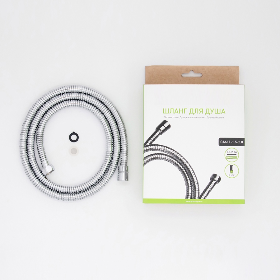 Душевой шланг GROSS AQUA (модель GA611-1.5-2.0) длиной от 150 до 200 см (1,5–2,0 м) в хромированном исполнении — это растягивающийся аксессуар для душевой системы, сочетающий удобство использования, надёжность и современный дизайн.