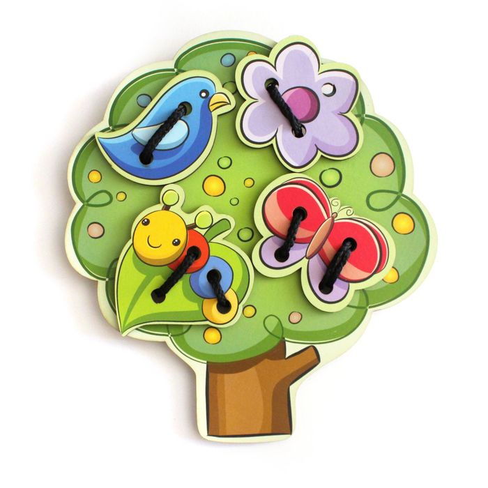 Методы воспитания и образования будут меняться бесконечно, но во все времена постоянным остаётся одно ― радость ребёнка от подаренной ему игрушки. Как известно, счастливая улыбка крохи ― самая большая награда для родителей. Шнуровка «Дерево с насекомыми и птицей» — отличный подарок вашему малышу.