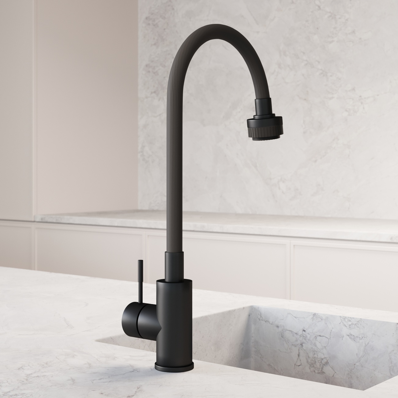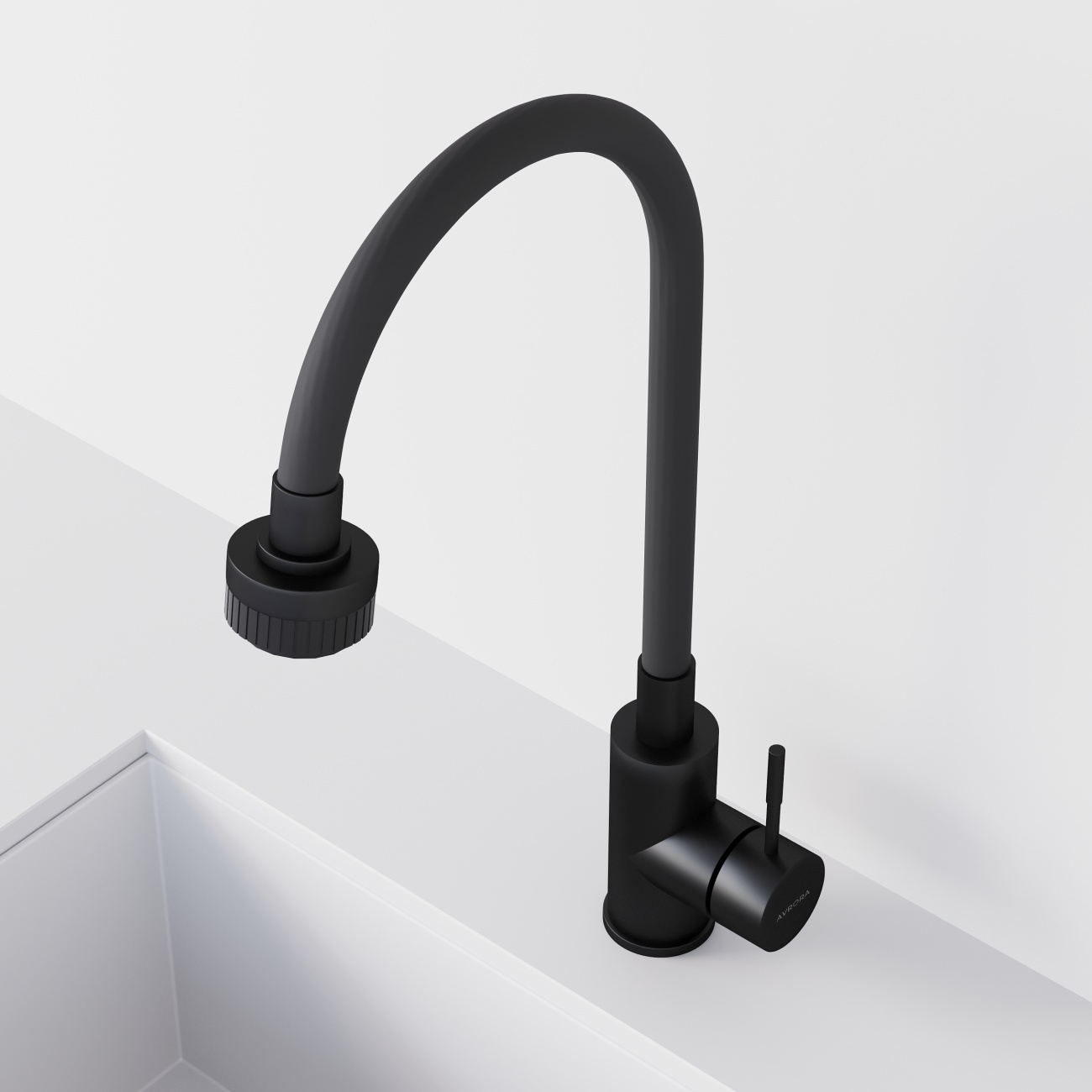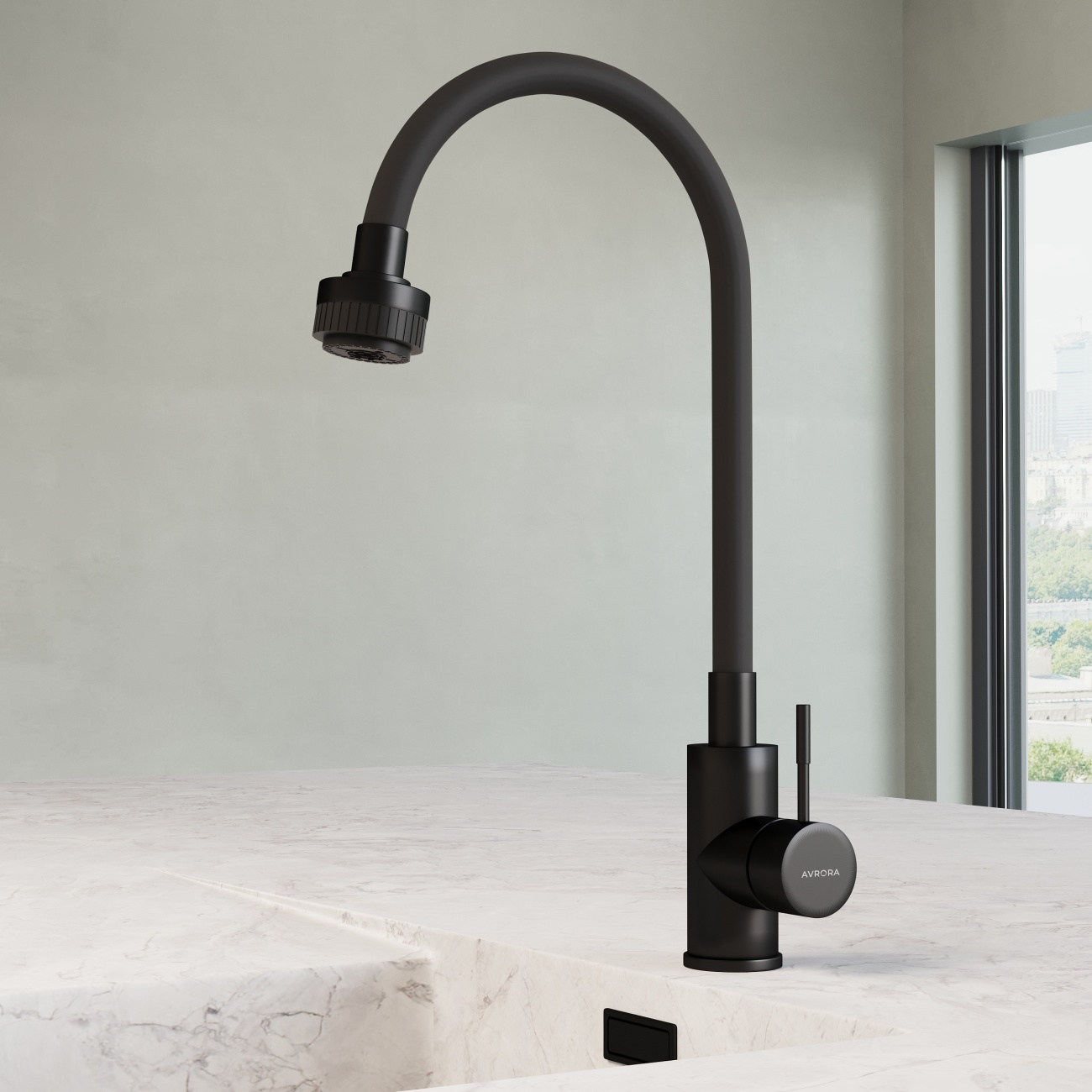 Смеситель для кухни AVRORA Kitchen AV9001B — это стильное и практичное решение для современной кухни, выполненное в элегантном чёрном цвете. Модель отличается высоким качеством исполнения и продуманной конструкцией.