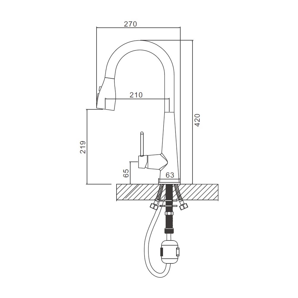 В комплекте с смесителем идёт гибкая подводка (M10*1-G1/2) длиной 45 см, что обеспечивает удобство монтажа и подключения к системе водоснабжения. Монтаж осуществляется при помощи гайки, что делает процесс установки простым и быстрым.