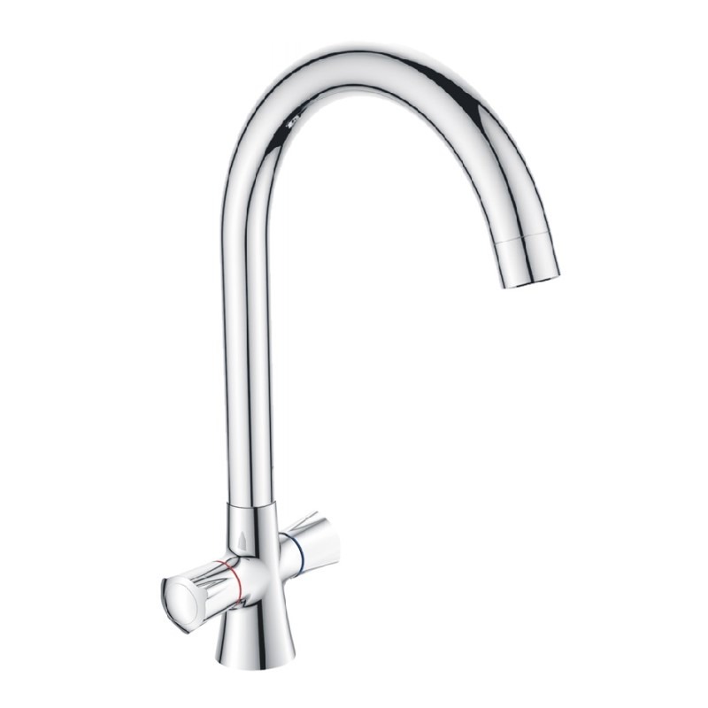 Смеситель для кухни Cron CN70866 в хромированном исполнении — это двухвентильная модель, предназначенная для установки на кухонную мойку. Изготовлен из металлического сплава и покрыт глянцевым хромом, благодаря чему выглядит элегантно и хорошо вписывается в современный интерьер.