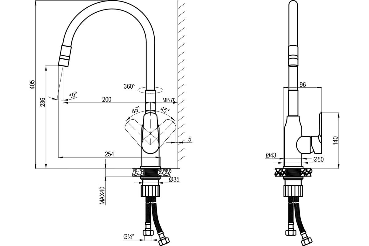 Смеситель для кухонной мойки - DR29024BL с высоким изливом представляет собой надежное и функциональное решение для оснащения кухонной зоны. Изготовленный из качественной латуни.