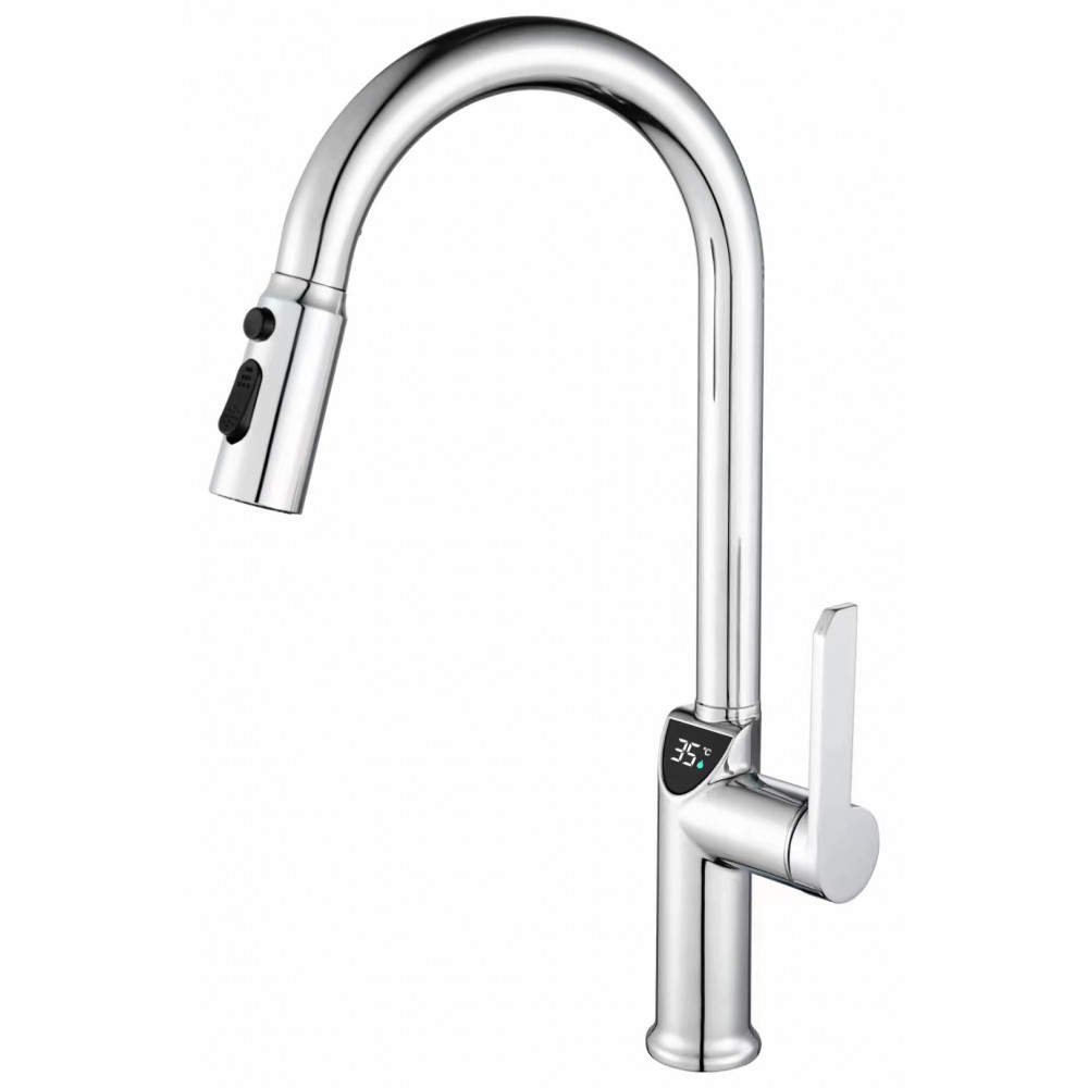 Смеситель для кухни Dikalan DT40371 цвета хром имеет стильный и современный дизайн, который идеально сочетается с интерьером кухни. Вытяжная лейка и 3 режима использования обеспечивают удобство при мытье, позволяя достигнуть любой части мойки.