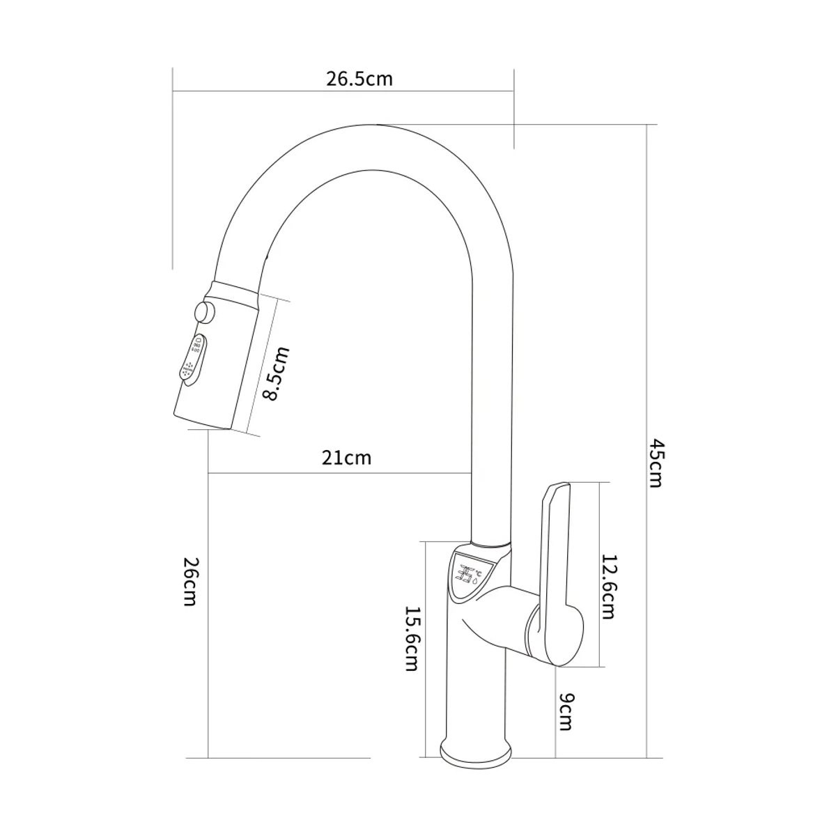 На корпусе смесителя размещен функциональный LED-дисплей, который отображает температуру подачи воды в режиме реального времени, обеспечивая контроль над комфортом использования.