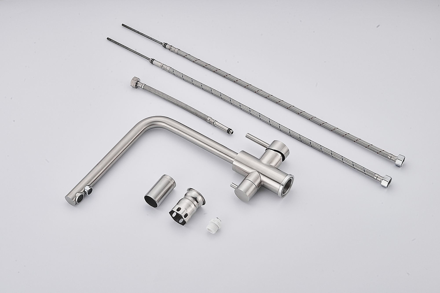 Смеситель для кухни Fmark FS0962L в сатиновом исполнении представляет собой качественное изделие из нержавеющей стали с серебристым оттенком. Модель оснащена двухрычажным управлением и керамическим картриджем, что обеспечивает плавное и надежное переключение воды. Особенностью данной модели является возможность подключения фильтра для воды, что делает её практичным выбором для современной кухни. Смеситель имеет гибкий излив, что обеспечивает удобство использования. В комплекте предусмотрена гибкая подводка стандарта 1/2 дюйма и аэратор. Модель устанавливается на одно монтажное отверстие и подходит как для мойки, так и для столешницы. Производитель Fmark предоставляет гарантию 5 лет на изделие, что подтверждает его надежность и качество. Современный дизайн с округлой формой делает смеситель стильным дополнением любого кухонного интерьера.