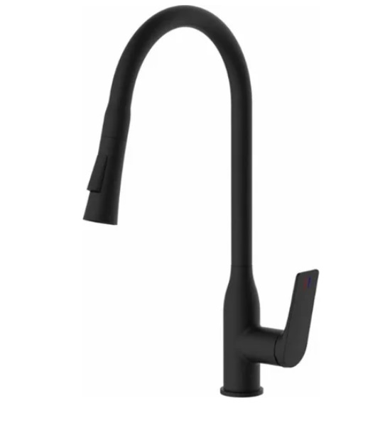 Смеситель для кухни бренда Haiba. Изготовлен из латуни. Укомплектован аэратором. Гибкая подводка 40 см. С поворотным изливом. Режим душ для удобного мытья посуды и продуктов.
