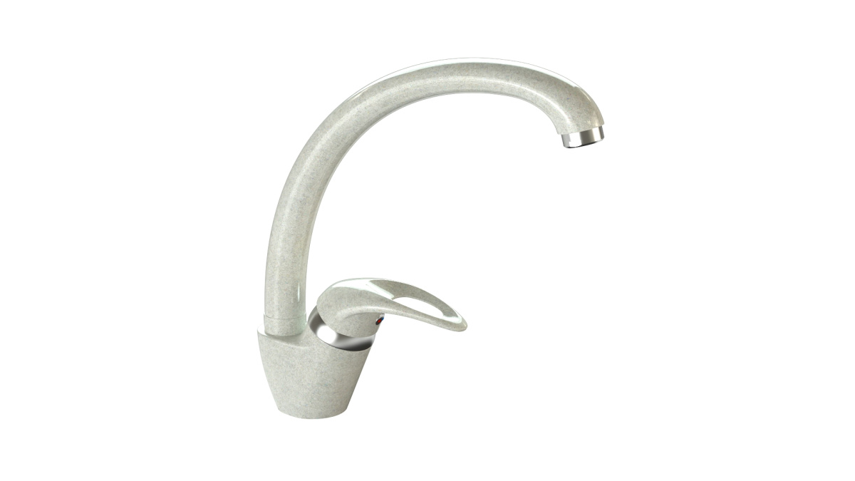 Корпус смесителя выполнен из прочного цинка, что гарантирует длительный срок службы. Матовое покрытие в оттенке белый гранит придает изделию особую изысканность и делает его идеальным дополнением к мойкам из искусственного камня. Поворотный излив с возможностью вращения на 360 градусов обеспечивает удобство при использовании раковины любой ширины.
