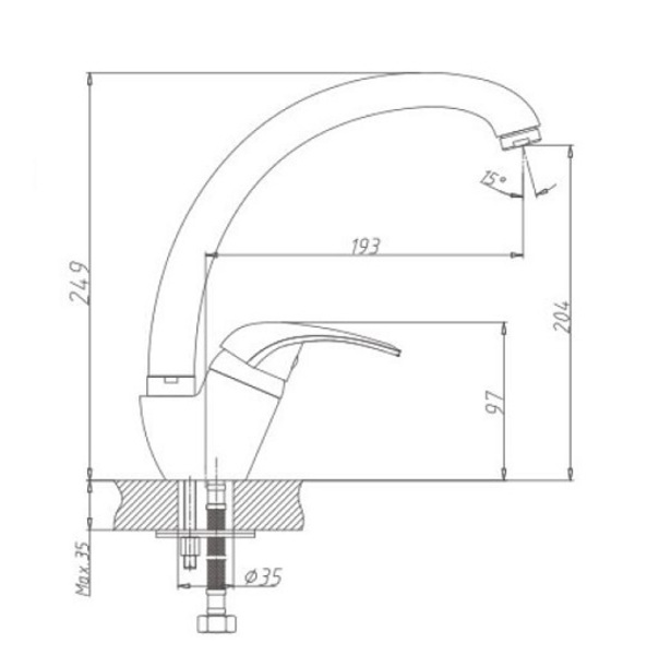 Особое преимущество модели — плоский поворотный излив, который может вращаться на 360 градусов, обеспечивая максимальный комфорт при использовании кухонной мойки. Монтаж осуществляется горизонтально и требует всего одно монтажное отверстие.