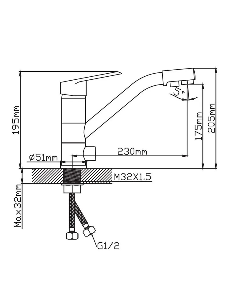 Смеситель подходит для различных стилей интерьера, от классического до современного, и станет ярким акцентом вашей кухни. Его эргономичная форма и удобный рычаг управления позволяют легко регулировать поток воды и ее температуру, что делает использование смесителя комфортным и приятным.