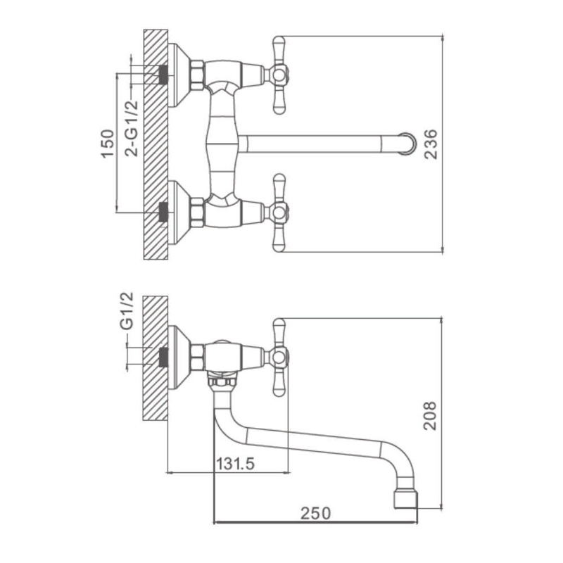 Смеситель для кухни Prohanss P10.46 — это настенная модель с поворотным изливом, предназначенная для монтажа на кухонную мойку. Он выполнен в классическом стиле с округлой формой, что придаёт ему элегантный вид.