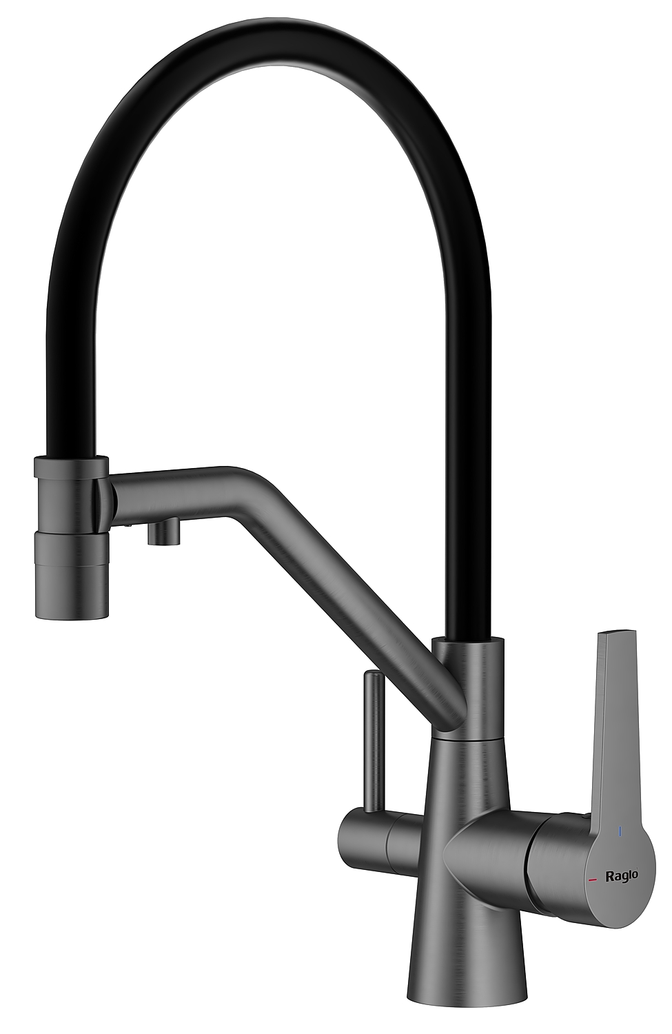 Смеситель для кухни Raglo R80.62.09 в графитовом исполнении — современное решение для обустройства кухонного пространства с возможностью подключения фильтра питьевой воды.