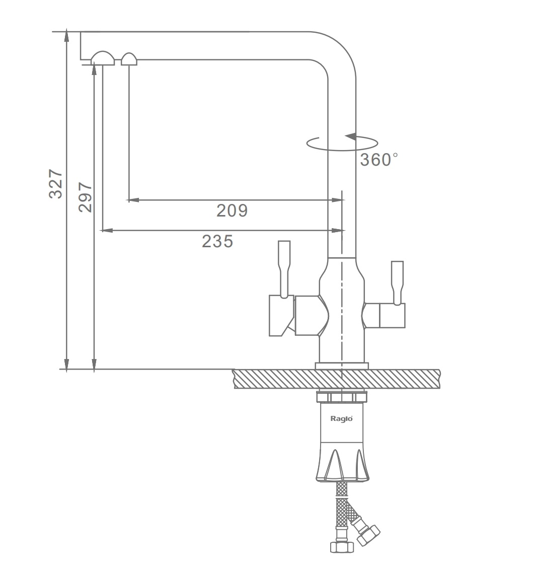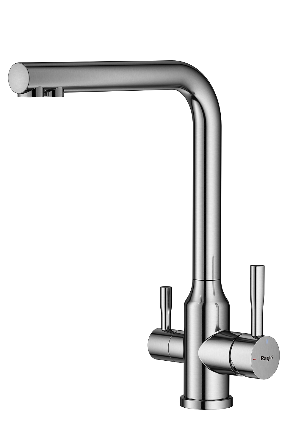 Главная особенность модели — наличие отдельного излива для фильтрованной воды, что позволяет использовать как обычную, так и очищенную воду. Поворотный излив длиной 23,5 сантиметра обеспечивает удобный доступ к любой точке раковины.