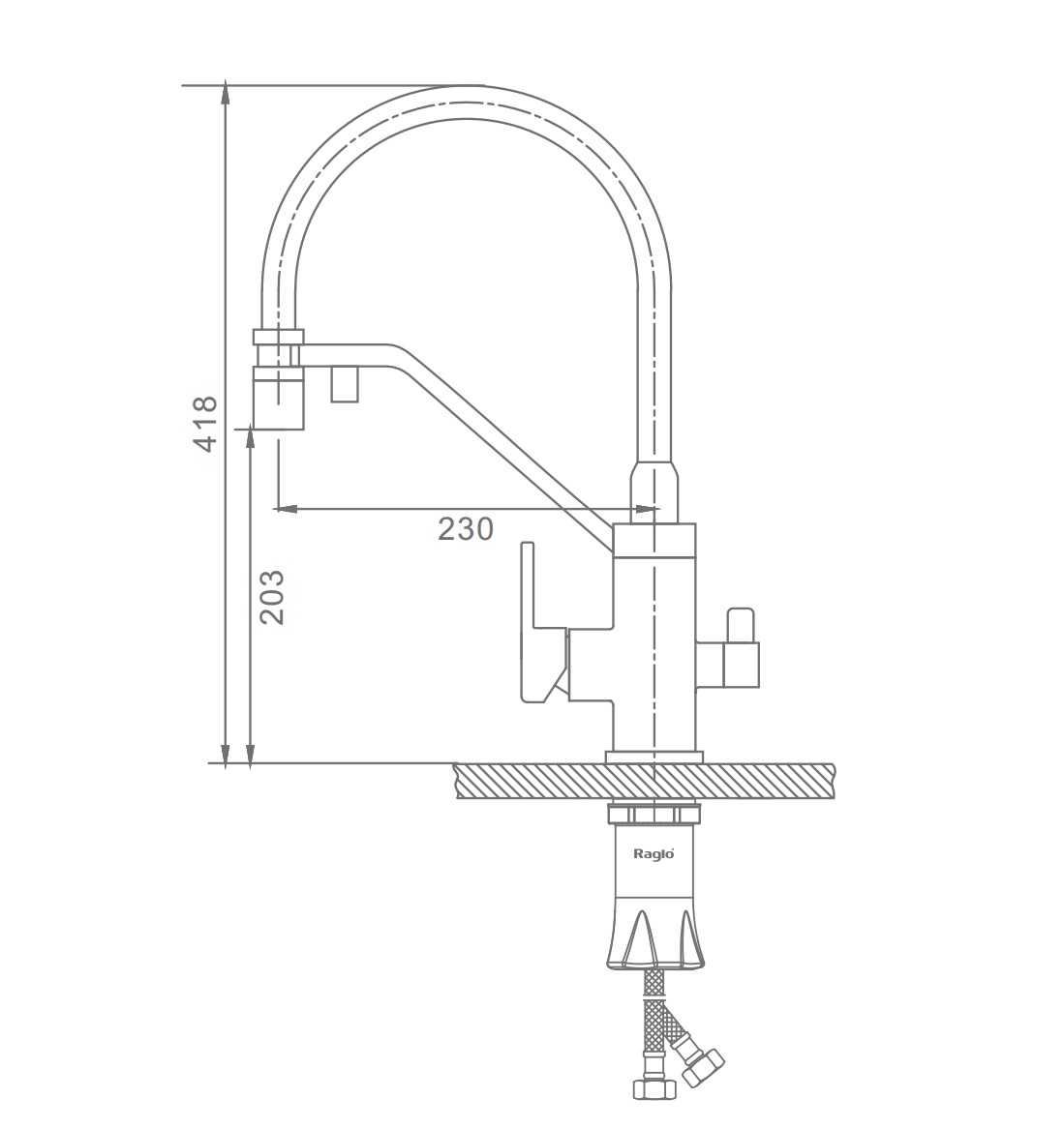 Монтаж осуществляется на одно отверстие, подходит для установки как на мойку, так и на столешницу. Гибкая подводка стандарта G 1/2 дюйма входит в комплект.