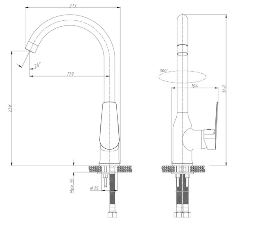 Смеситель для кухни с высоким изливом Rossinka S35-24. Пластиковый. Смеситель Rossinka S35-24 Хром аэратор с функцией легкой очистки. Керамический картридж 35 мм.