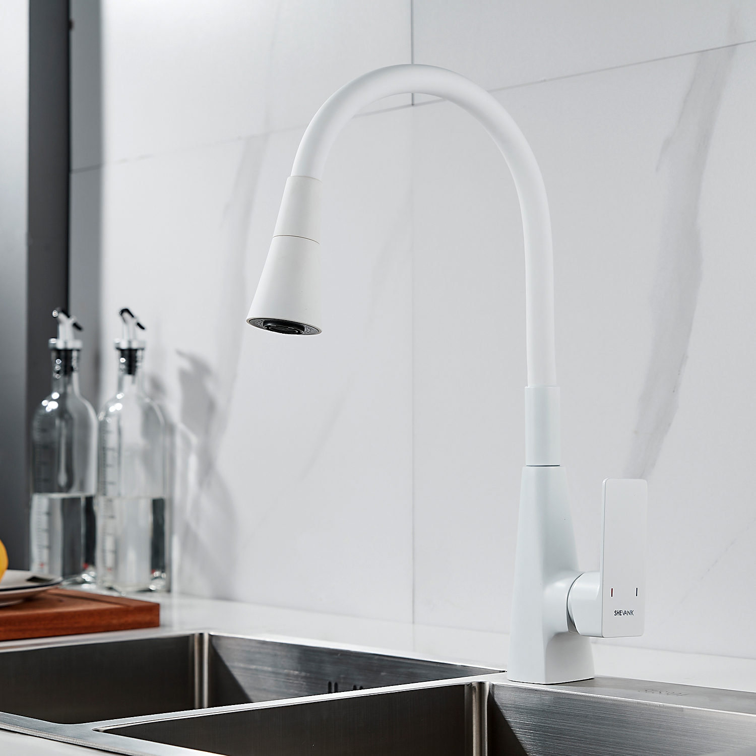 Смеситель для кухни Shevanik S543C-1 с гибким белым изливом представляет собой стильное и функциональное решение для вашей кухни. Он выполнен из высококачественной латуни и имеет современный дизайн с матовой поверхностью, что придает ему элегантный вид и устойчивость к отпечаткам пальцев. Гибкий излив позволяет удобно направлять струю воды, что особенно полезно при мытье крупногабаритной посуды. Управление смесителем осуществляется с помощью однозахватного рычага, что обеспечивает удобство и простоту использования. В комплекте идет гибкая подводка, облегчающая установку. Смеситель оснащен керамическим картриджем и функцией экономии расхода воды, что делает его не только стильным, но и экономичным в эксплуатации. Гарантия от производителя составляет 5 лет, что подтверждает высокое качество и надежность данного изделия.