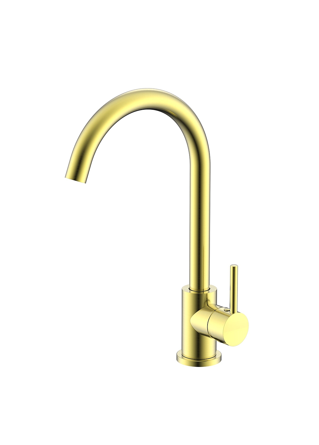Премиальное сатиновое покрытие в золотистом оттенке придает смесителю роскошный вид, который гармонично впишется в любой современный интерьер. Округлая форма корпуса и изящные линии делают его настоящим произведением искусства.