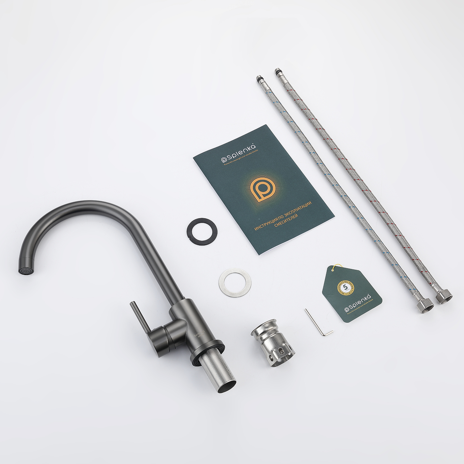 Элегантный кухонный смеситель Splenka S201.40.09 в изысканном графитовом исполнении станет стильным акцентом вашей кухни. Изготовленный из высококачественной нержавеющей стали, этот современный прибор привлекает внимание своим благородным внешним видом и безупречным исполнением.