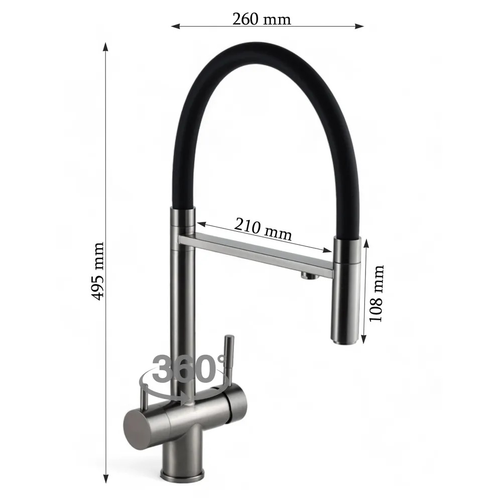 Смеситель для кухни Wasser Zimmer ZM-4010H под фильтр графит