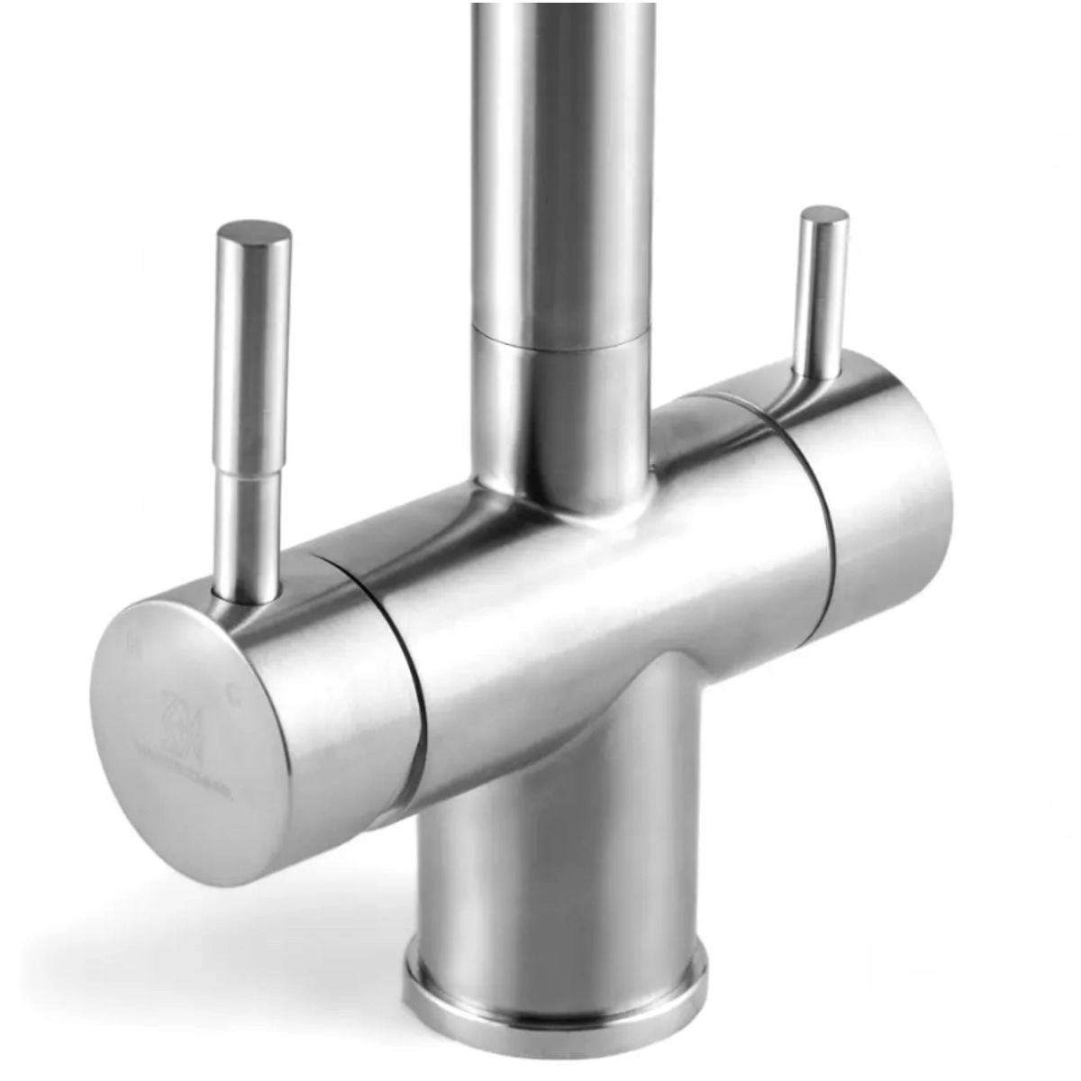 Смеситель для кухни Wasser Zimmer ZM-6012H с возможностью подключения фильтра — это современная модель, сочетающая в себе функциональность и практичность. Корпус смесителя изготовлен из высококачественной антивандальной нержавеющей стали, которая устойчива к коррозии, перепадам давления и температуры воды.
