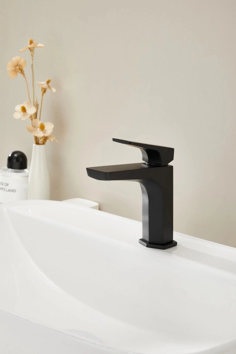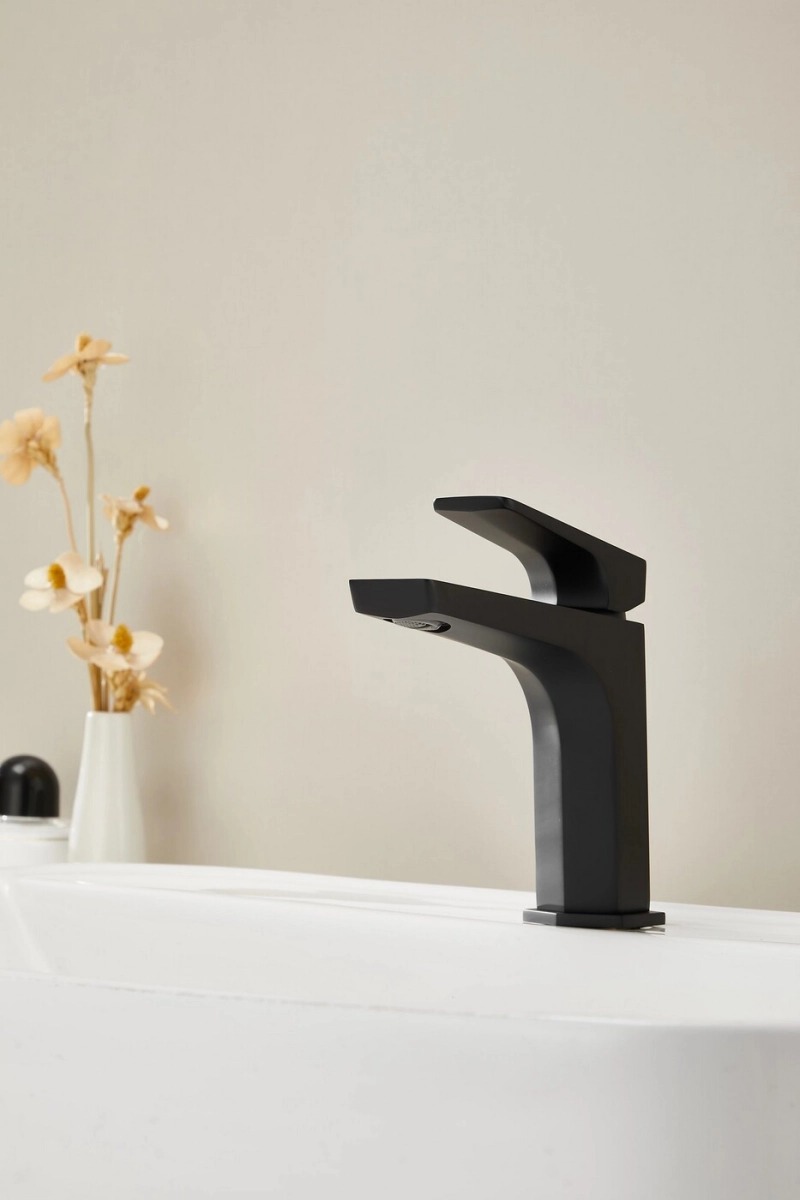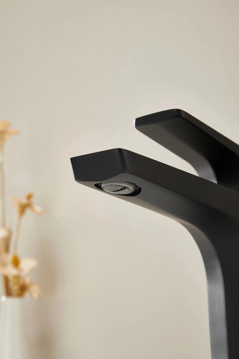 Матовое чёрное покрытие — не только стильный дизайнерский ход, но и практичное решение: на поверхности меньше заметны отпечатки пальцев и водяные разводы, поэтому уход за смесителем проще. Модель отлично впишется в современный интерьер ванной комнаты, став выразительным акцентом.
