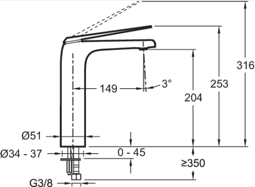Излив фиксированной конструкции имеет длину 14,9 см и высоту 20,4 см, форма — округлая, поворотный механизм отсутствует. Расход воды ограничен до 5 л/мин, что способствует экономии и снижает вероятность брызг. В комплект входят: гибкая подводка (стандарт 3/8 дюйма), аэратор с антиизвестковым покрытием (упрощает уход и продлевает срок службы), а также крепёжные элементы. Донный клапан в комплект не входит.