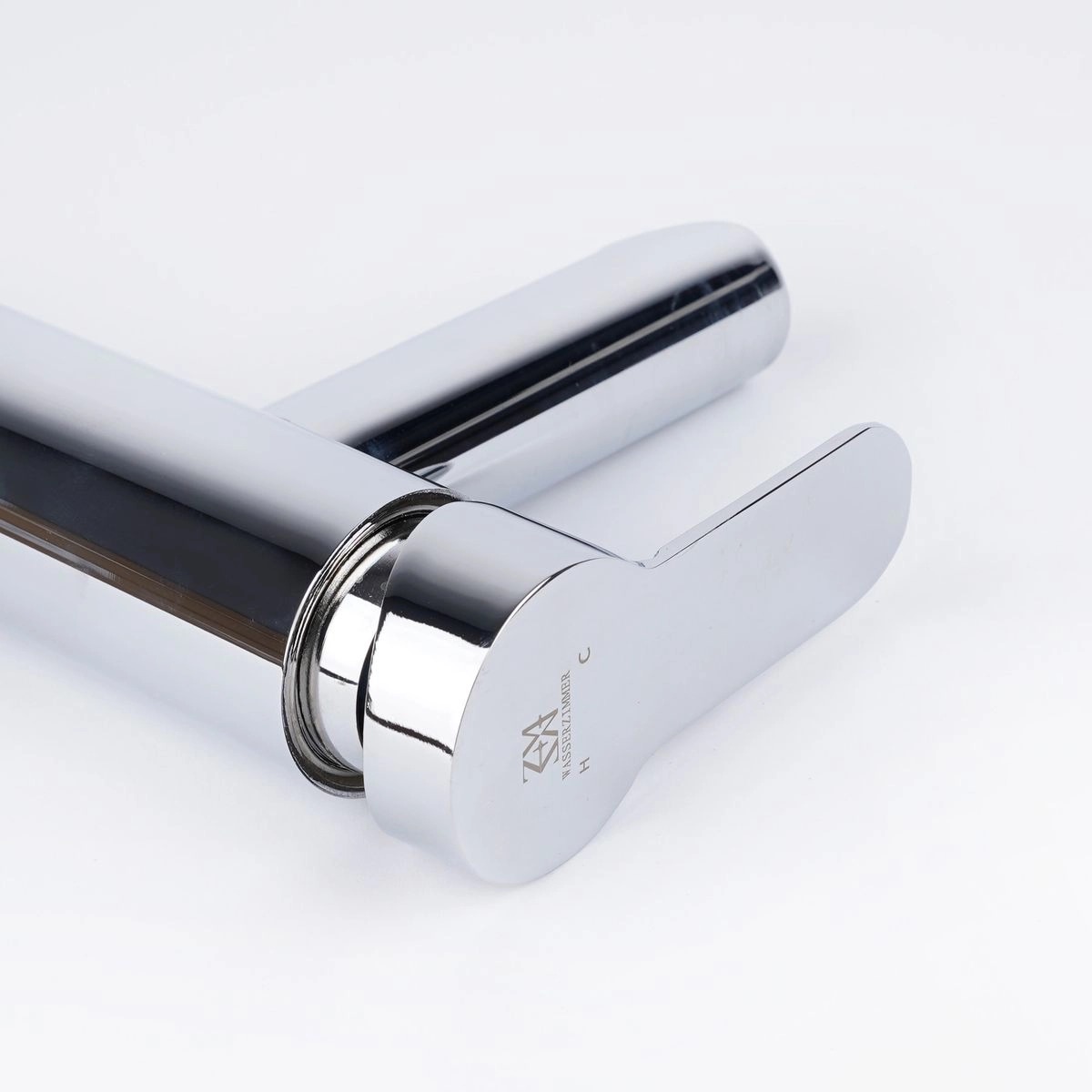 Смеситель для раковины Wasser Zimmer ZM-7721-1 в хромированном исполнении представляет собой однорычажную модель с литым круглым изливом. Устройство изготовлено из нержавеющей стали, что обеспечивает устойчивость к коррозии, а также к перепадам температуры и давления воды.
