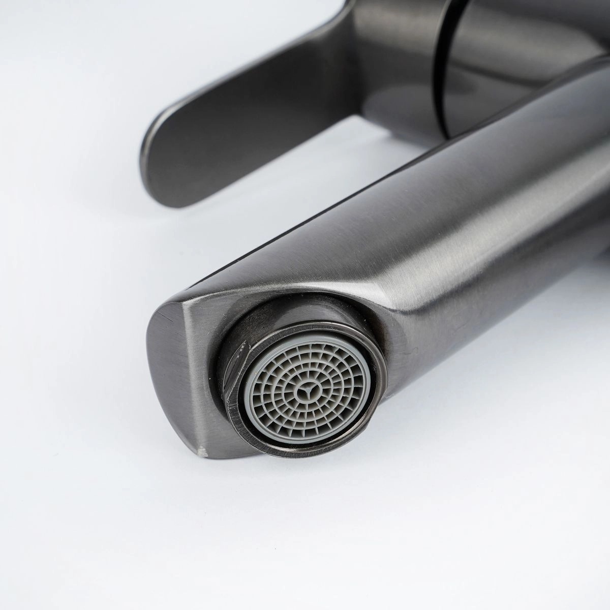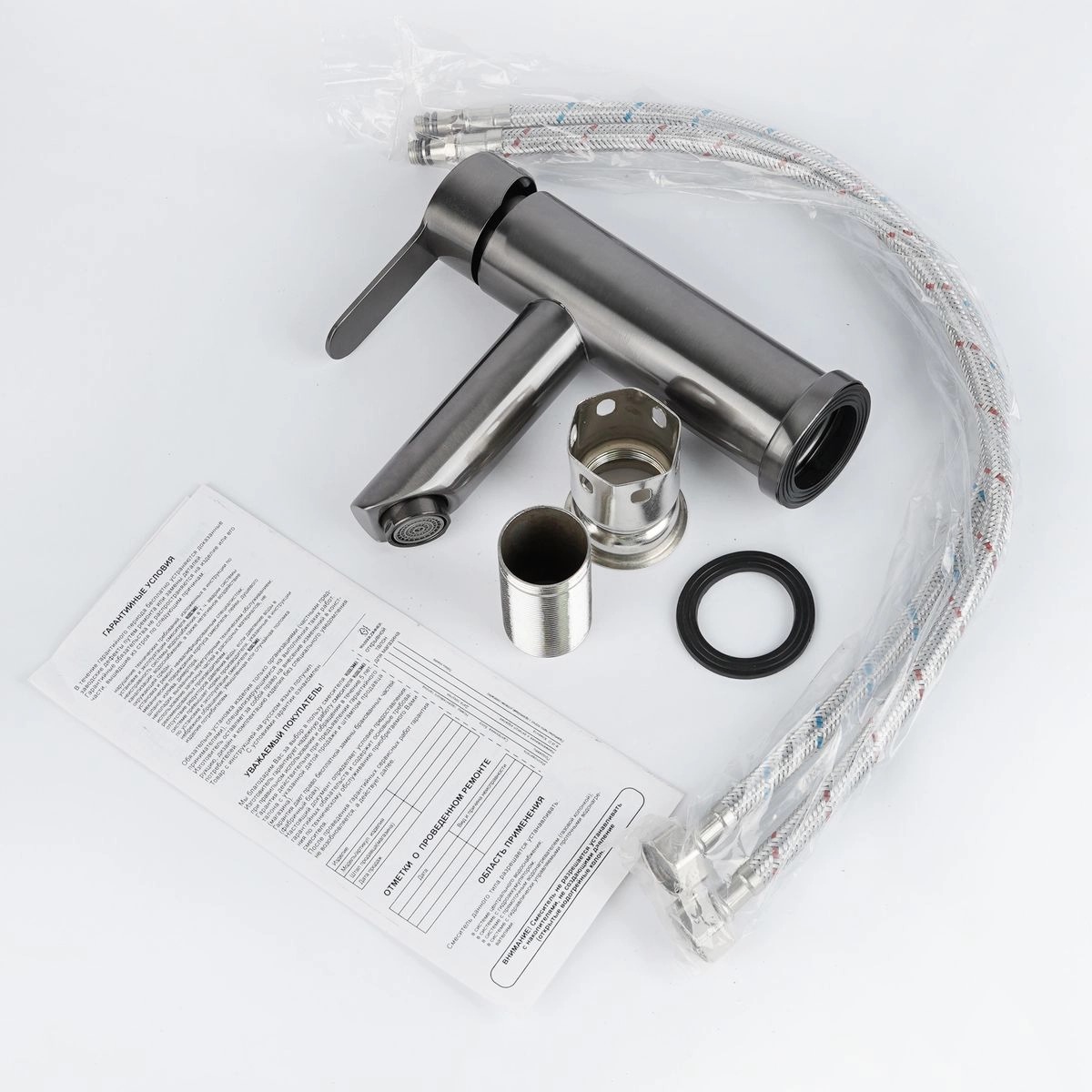 Смеситель для раковины с литым коротким изливом 10 см цвет ГРАФИТ - это современное и надежное решение для вашего санузла. Нержавеющая сталь экологична, обладает высокой прочностью, устойчивостью к коррозии, воздействию химических веществ. Смеситель для умывальника оснащен литым изливом 10 см, который отличается надежностью и удобством в использовании. Аэратор расположен под небольшим углом, что позволяет направлять поток воды прямо в центр раковины. Керамический картридж и изящная ручка смесителя гарантируют плавное и точное регулирование температуры и напора воды. При выборе смесителя обратите внимание на его функциональность, качество материалов и сборки, а также на соответствие стилю вашего санузла. Графитовый цвет будет отличным выбором, если вы хотите добавить изысканности и современности в интерьер. Комплект поставки: смеситель, комплект крепления, подводка.