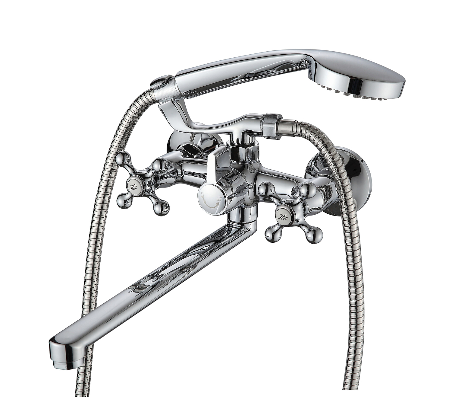 Переключение между режимами ванна/душ производится с помощью специального картриджа с поворотом на 90 градусов. В комплект входит гибкий душевой шланг длиной 150 сантиметров и однорежимная лейка душа. Аэратор с наружной резьбой способствует экономии воды и делает струю более мягкой и приятной.