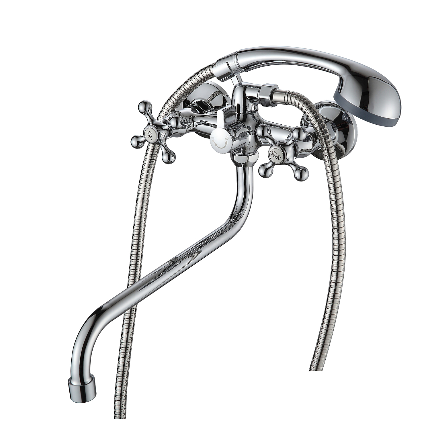 Переключение между режимами ванна/душ производится с помощью специального картриджа с поворотом на 90 градусов. В комплект входит гибкий душевой шланг длиной 150 сантиметров и однорежимная лейка душа. Аэратор с наружной резьбой способствует экономии воды и делает струю более мягкой и приятной.